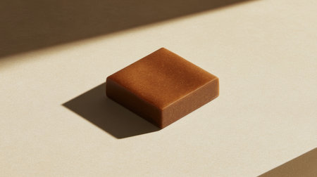 A smooth natural brown soap bar rests on a minimalist background, casting soft shadows that enhance its simple elegance, ideal for wellness and skincare.
