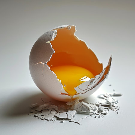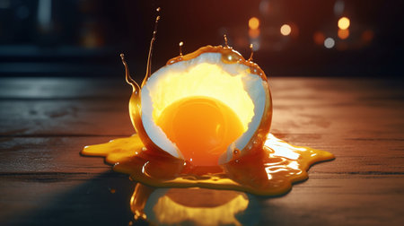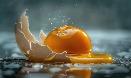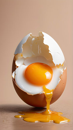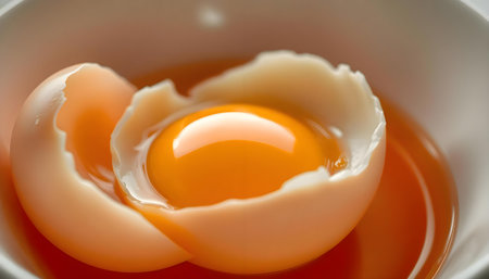 Close-Up Broken Egg with Intact Yolk: Culinary Concept for Advertisements and Blogs