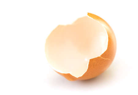 Broken egg isolated on white background.