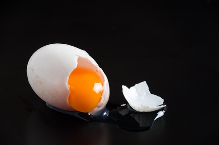 Broken eggs with black background.