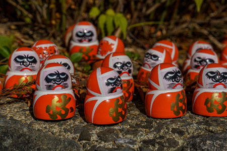 Jizo statues with red bibs and hats in okunoin cemetery, mount koya, Japan