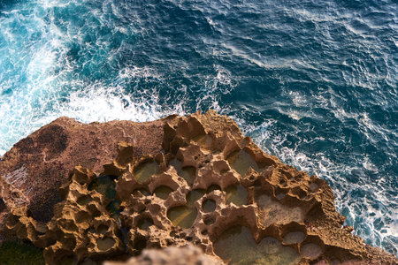 The cliffs and the ocean near the Uluwatu Temple on Bali, Indonesia.waves crashing against the cliff