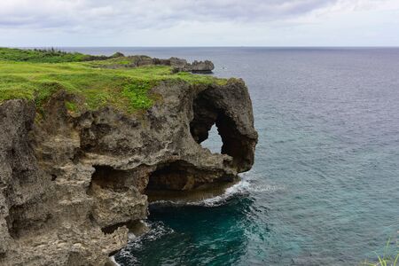 Cape Manzamo, the cape that extending to the sea off the west coast of the island. Resemble Clary As a result of erosion by wind and water for several hundred years. one of the landmark on Okinawa island Japan.