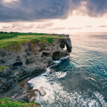 Okinawa Cape Manzamo Rock cliff landscape sunset Cape stone. Okinawa Island Japan