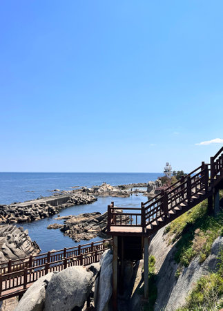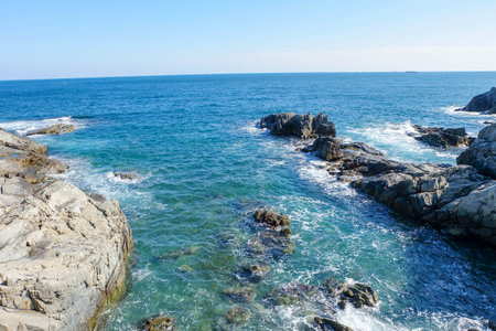 Jukdo mountain trail road, seascape with rocks in Yangyang, Korea