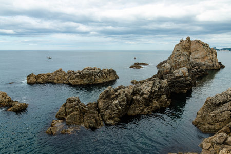 Rocky coastline and magnificent cliffs at Taejongdae recreational park, Busan, South Korea