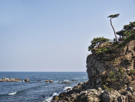Beautiful cliff by the sea in Naksansa temple, South Korea