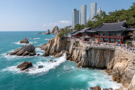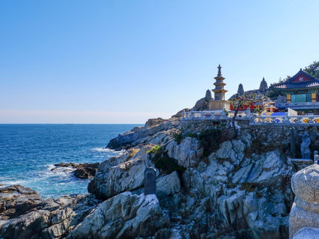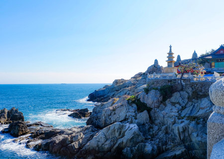 Haedong Yonggungsa Temple and Haeundae Sea in Busan, South Korea