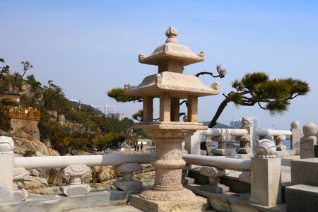 Stone lantern at Haedong Yonggungsa Temple in Busan, South Korea.