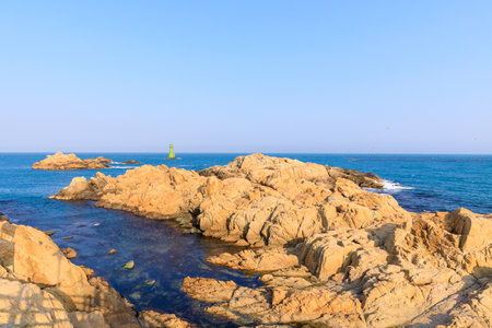 Rock beach on Haeundae Dongbaekseom Island , Busan South Korea.