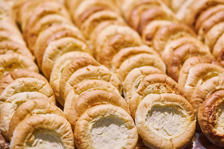 Baked profiteroles on tray