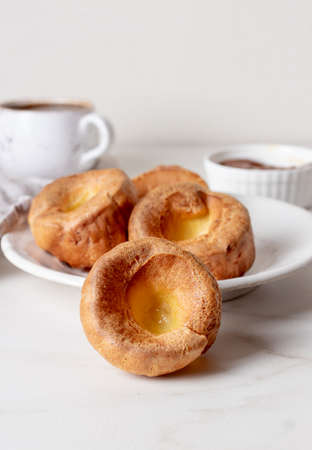 Yorkshire Puddings with condensed milk cream and coffe. Homemade Traditional fluffy golden Yorkshire Puddings.