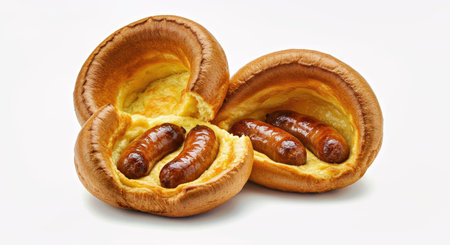 Perfectly puffed Yorkshire puddings with a crisp exterior and tender interior, ideal for soaking up savory gravy, served with a traditional British Sunday roast, traditional English dish
