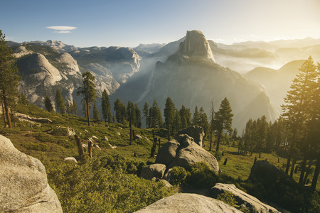 Yosemite Valley and Half Dome in the morning during beutiful sunrise