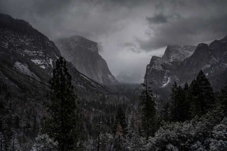 Yosemite Valley during cloudy day in winter.