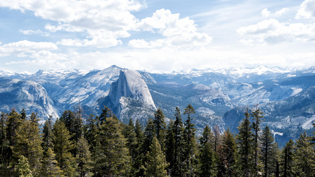 Panoramic view from Glacier Point, Yosemite National Park. National park in the western Sierra Nevada, mountains of Nothern California