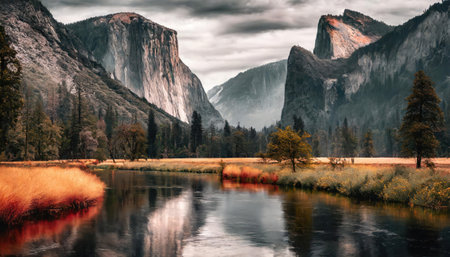 Autumn landscape view in Yosemite National Park with river