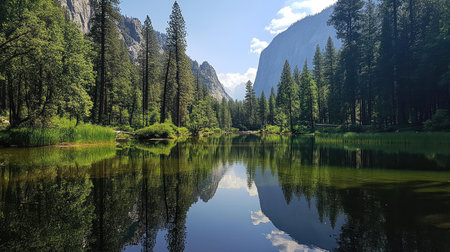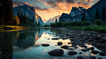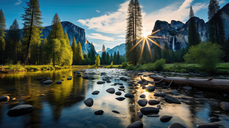 Majestic Yosemite Valley Landscape with Reflections on the Merced River at Sunrise
