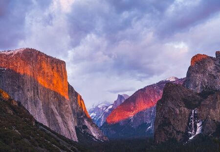beautiful colorful of yosemite national park at sunset in winter season,Yosemite National park,California,usa.