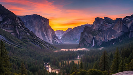 Yosemite National Park at sunrise, California, United States.