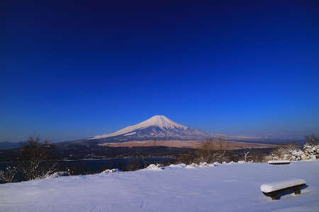 Mt. Fuji in blue sky from Mt.Ohira Yamanaka Lake snowy