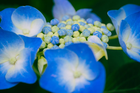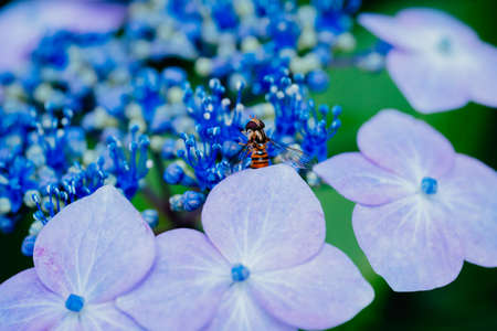 Blue Hydrangea macrophylla flower in the garden at summer