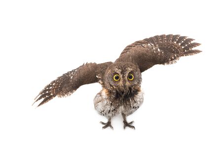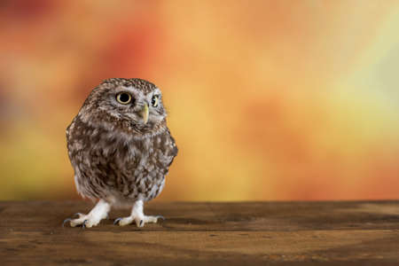 Little Owl (Athene noctua) on colorful background. With copy space.