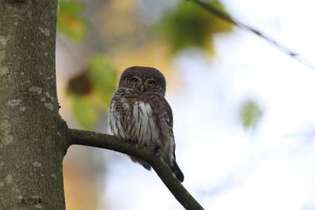 Glaucidium passerinum. It is the smallest owl in Europe. It occurs mainly in northern Europe. But also in Central and Southern Europe. In some mountain areas. Photographed in the Czech Republic. Wild