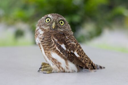 Little Owl, Athene noctua. Portrait owlet bird in the nature habitat.