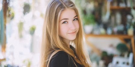 Portrait of a beautiful young woman smiling at camera in a restaurant