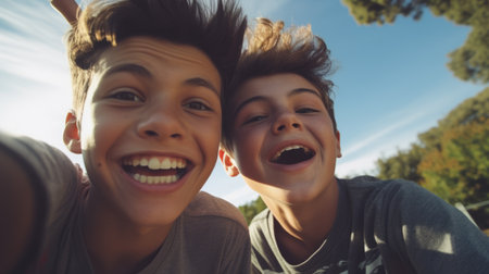 A heartwarming image of two brothers embracing each other, their smiles radiating genuine affection and joy.