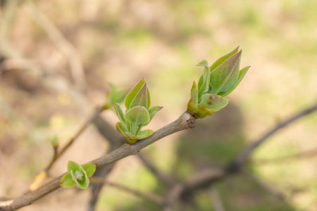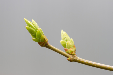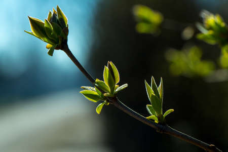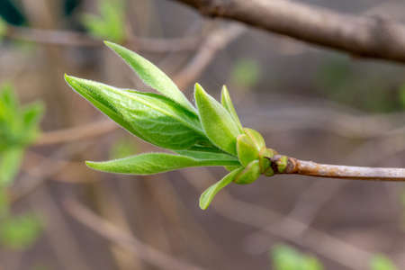 The first leaves on a branch of lilac