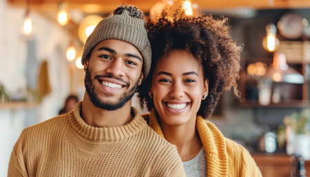 portrait of a happy young couple at home, created with generative ai