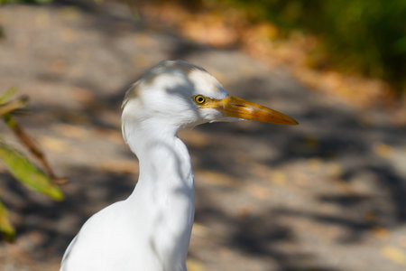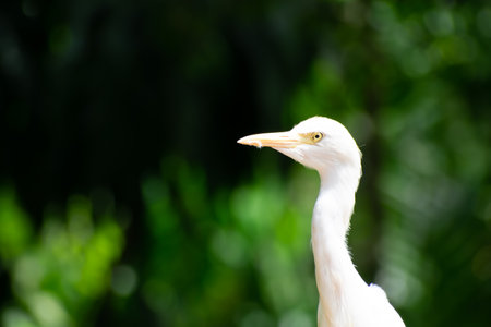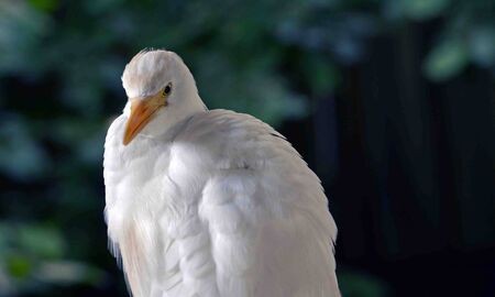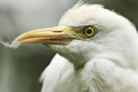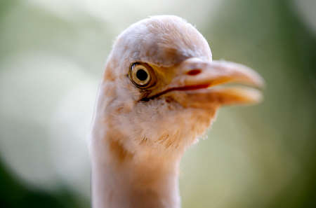 Portrait of a cattle egret. Close-up view of a cattle egret