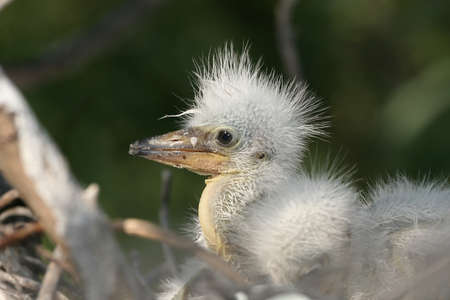 Newborn Snowy Egret - Egretta thula - chicks on nest in St Augustine, Florida.
