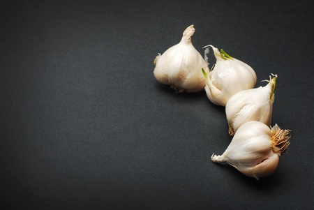 Garlics top view on a textured background space for text