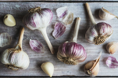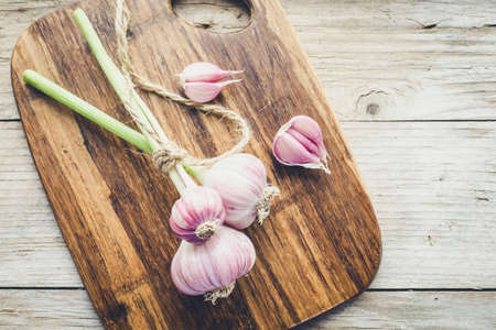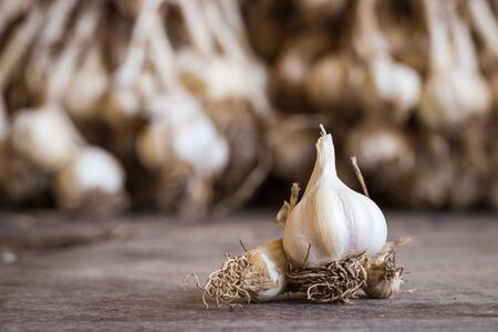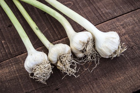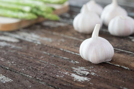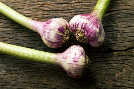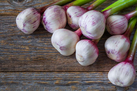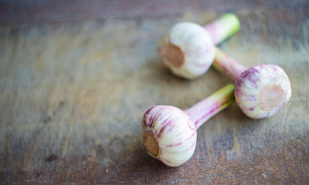 Organic garlic on old wooden floor