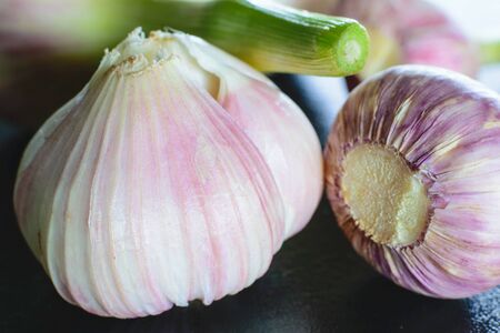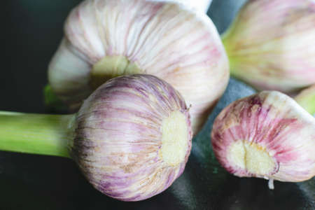 Close-up Garlic bulbs and garlic cloves is a top view
