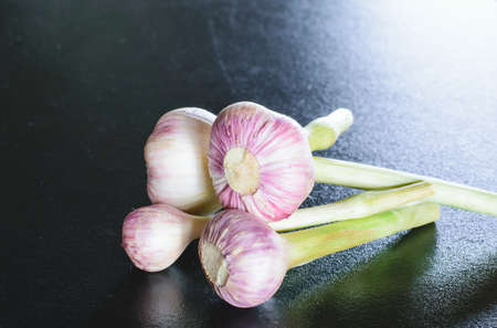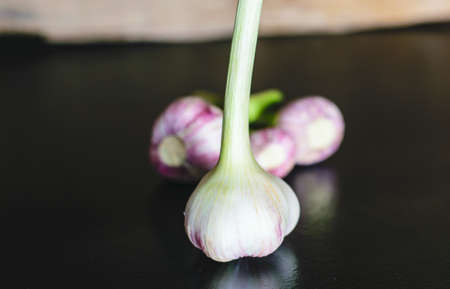fresh and healthy garlic with tree on kitchen for cooking
