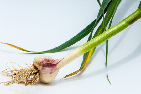 Fresh young garlic isolated on white background