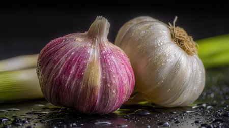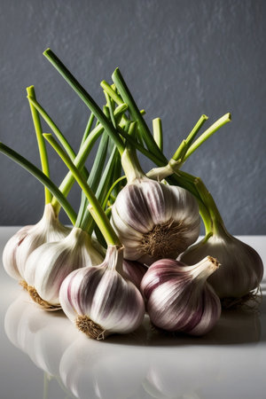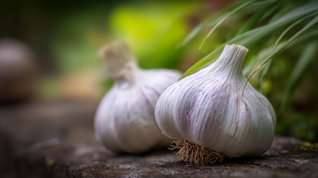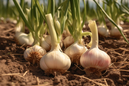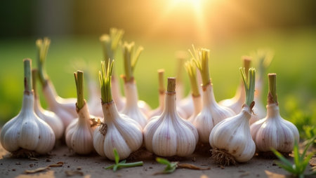 SunDrenched Garlic Bulbs with Green Tops Nature Photography