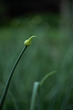 Onion Flower Bud Close-Up in Home Garden