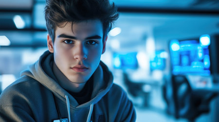 Confident Young Man in Coding Environment