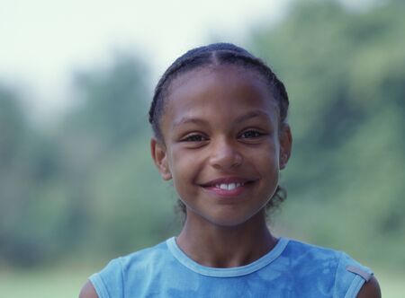 Portrait of a young girl in a park. Horizontal shot with natural light.