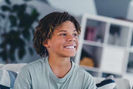 Smiling youth enjoying a casual moment at home reflecting happiness and leisure