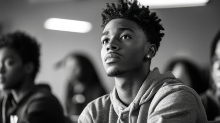 a student looking away from the camera with a subtle smile on his face, created with generative ai