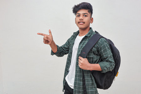 Young Indian college boy Showing Direction With Hand