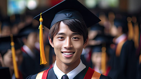 Asian young male smiling graduate against the background of university graduates.