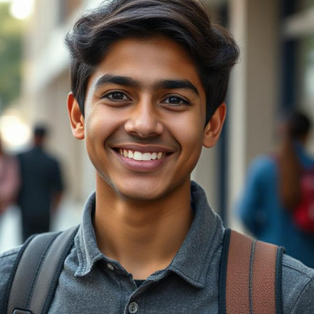 Portrait of a young Indian college student smiling at the camera