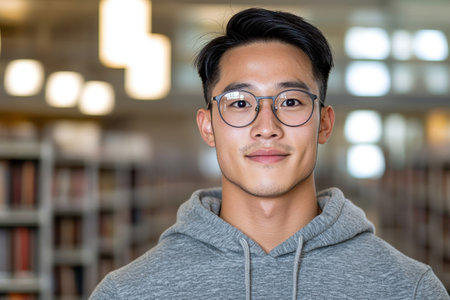 Portrait of a young asian man with glasses